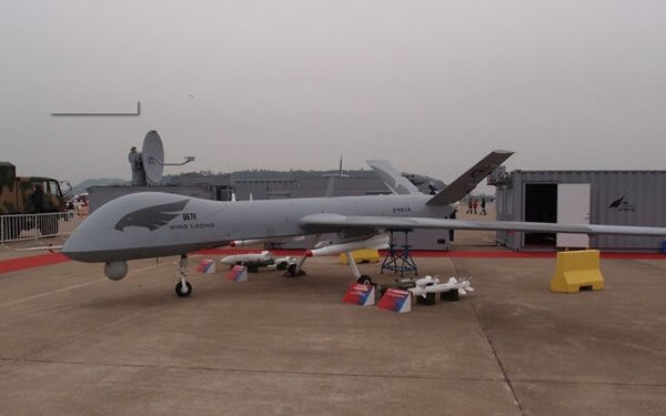 中航工业在2012年的珠海航展上首次展出“翼龙”无人机,数据显示该机最大起飞重量为1100千克,升限为5000米,最大航程为4000千米,最大速度280千米/时,有效载荷超过200千克,能够在翼下挂载精确制导炸弹执行攻击任务。